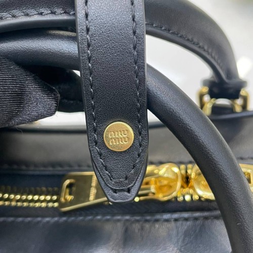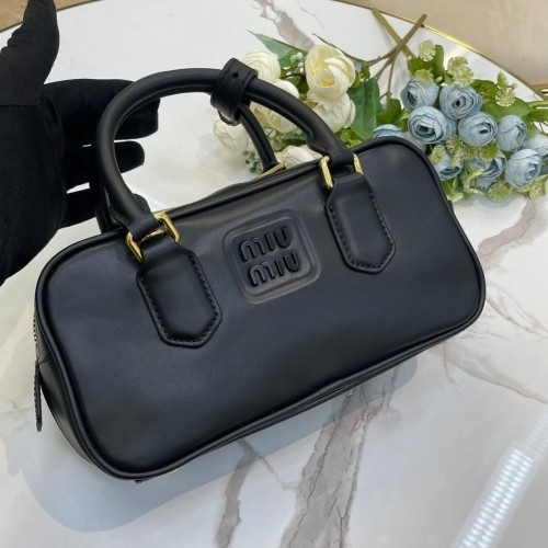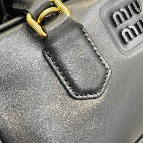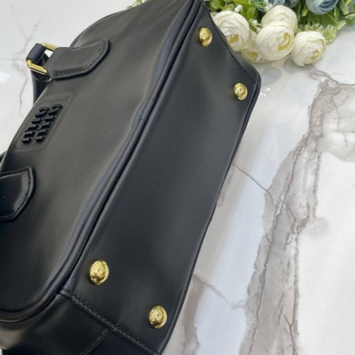 Черная сумка Miu Miu из натуральной кожи. Модель можно носить несколькими способами благодаря ручкам и плечевому ремню. Стильный аксессуар порадует вас своей вместительностью. В нашем интернет-магазине вы можете купить копии сумок с доставкой по Москве и по всей России.