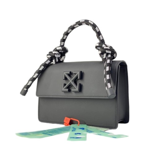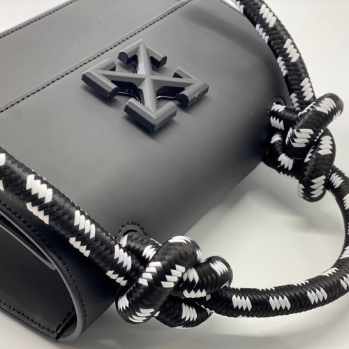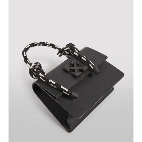 Черная сумка Off-White Jitney из натуральной кожи. Эта невероятно модная и современная сумка сможет потрясающе дополнить собой любой стильный образ. Съемный ремень через плечо и оригинальная ручка, выполненная в виде текстильного каната, позволяют носить ее в самых разных вариациях. В нашем интернет-магазине вы можете купить копии сумок с доставкой по Москве и по всей России.