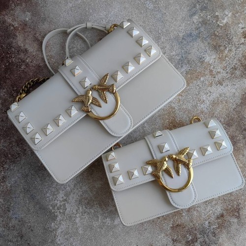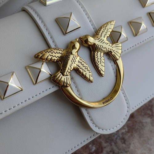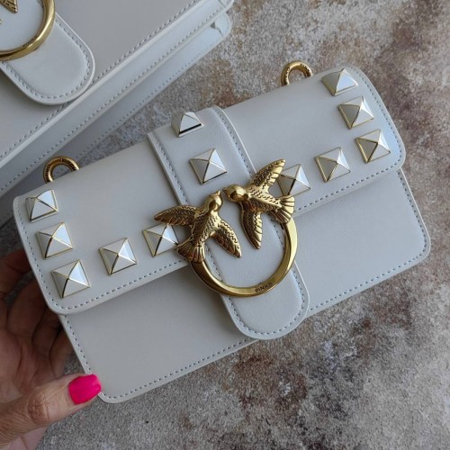 Белая сумка Pinko из натуральной кожи. Модель украшена легендарными ласточками на закрытии. Аксессуар дополнен фурнитурой золотистого оттенка. В нашем интернет-магазине вы можете купить копии сумок с доставкой по Москве и по всей России.
