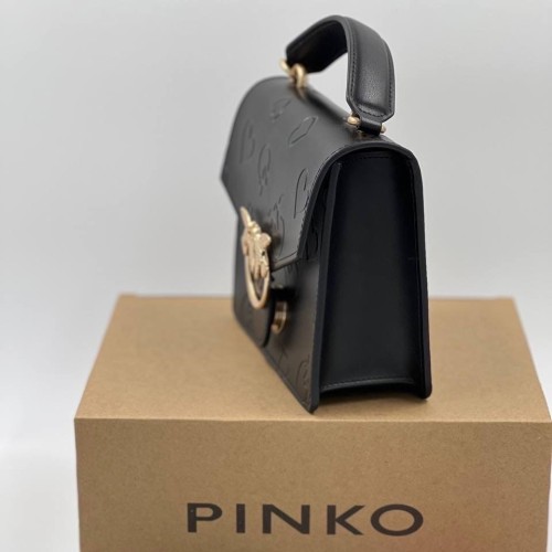 Черная сумка Pinko из натуральной кожи. Модель дополнена тисненным рисунком по всей поверхности. Благородный черный цвет аксессуара подчеркнет ваш образ и удачно завершит его. В нашем интернет-магазине вы можете купить копии сумок с доставкой по Москве и по всей России.