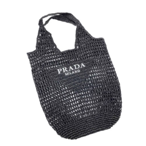 Черная сумка Prada из рафии. Восхитительная модель из рафии, идеально подходящая для лета, такие сумки сейчас находятся на самом пике популярности. С ней вы легко сможете поехать как на пляж, так и в путешествие или просто прогуляться по городу. В нашем интернет-магазине вы можете купить копии сумок с доставкой по Москве и по всей России.