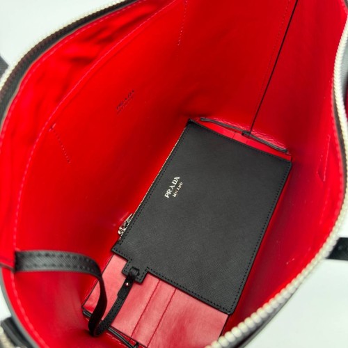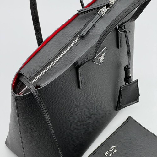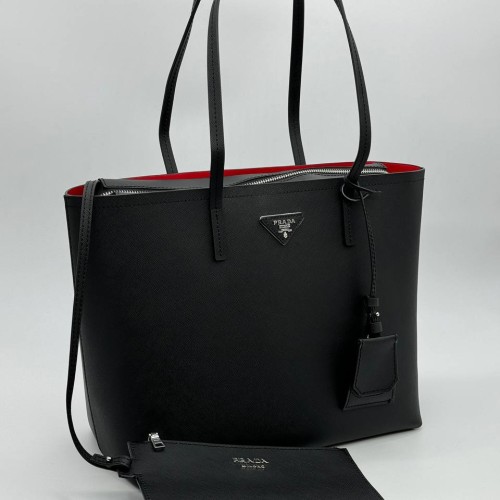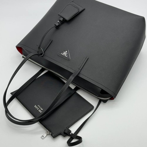 Черная сумка Prada из натуральной кожи. Очень красивая модель порадует вас своей вместительностью. Носить её можно разными вариациями, благодаря удлиненным ручкам. В нашем интернет-магазине вы можете купить копии сумок с доставкой по Москве и по всей России.