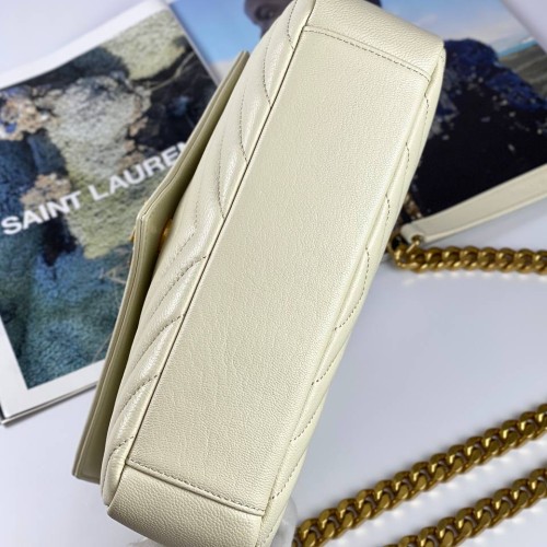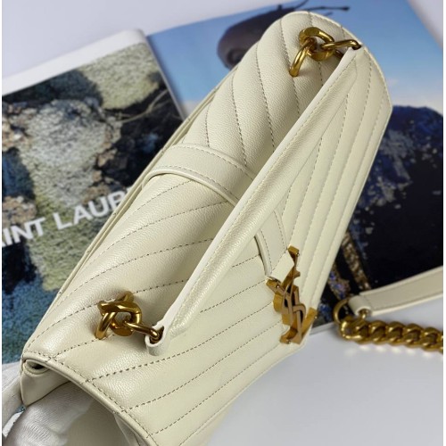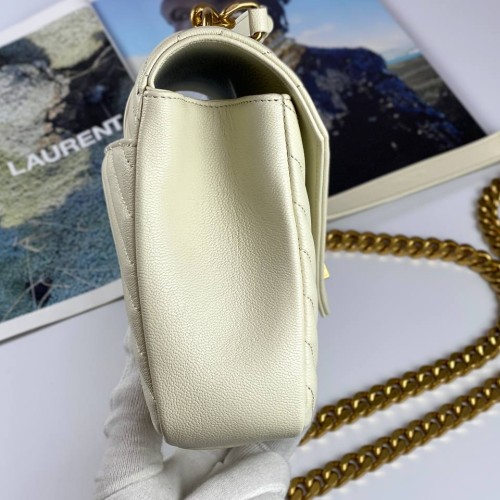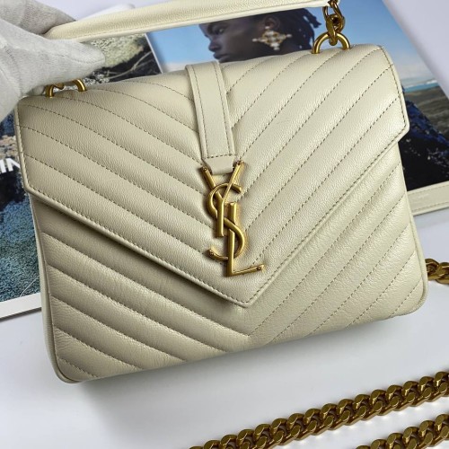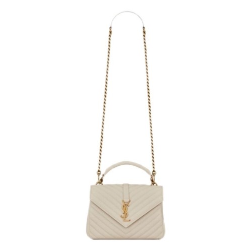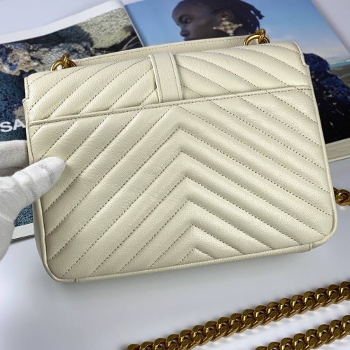 Белая сумка Saint Laurent College из натуральной кожи. Стильный аксессуар, легко вмещающий в себя все необходимые вам вещи. Эта шикарная сумка выполнена из отличной, мягкой кожи, которая великолепно дополнена запоминающимся узором в виде стежки. В нашем интернет-магазине вы можете купить копии сумок с доставкой по Москве и по всей России.