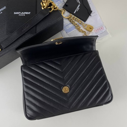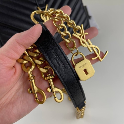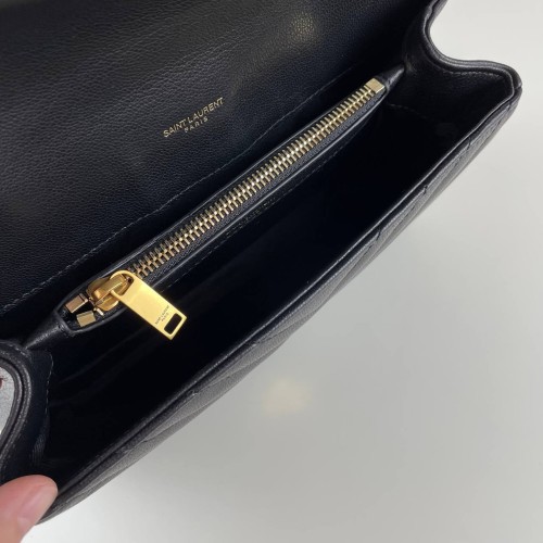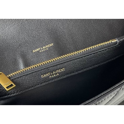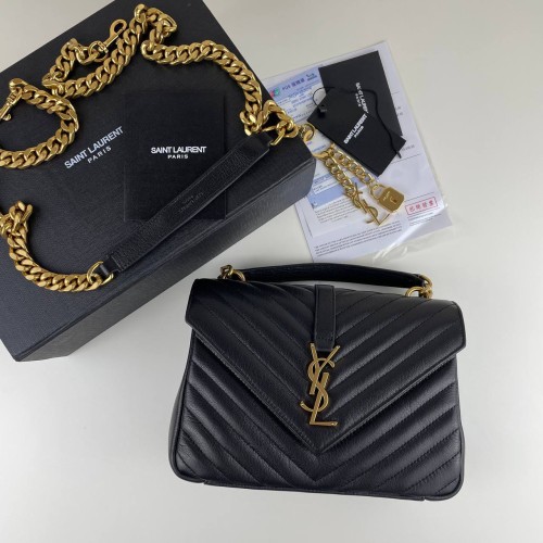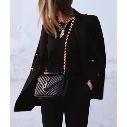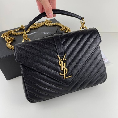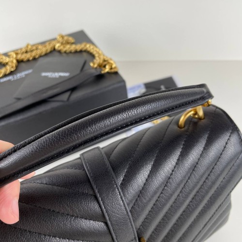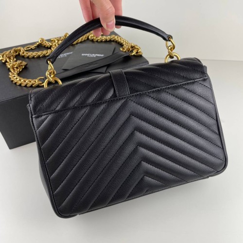 Черная сумка Saint Laurent College из натуральной кожи. Стильная и компактная сумка великолепно дополнена прекрасным узором в виде стежки. Носить этот функциональный аксессуар можно в различных вариациях. В нашем интернет-магазине вы можете купить копии сумок с доставкой по Москве и по всей России.
