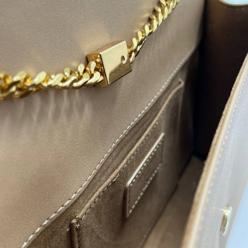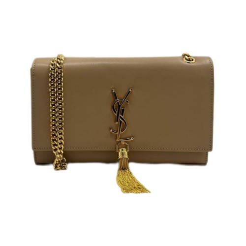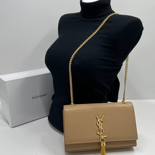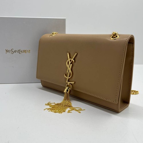 Бежевая сумка Saint Laurent из натуральной кожи. Небольшая, практичная сумка дополнена прекрасной фурнитурой цвета золота. Благодаря удобному ремню-цепочке ее можно носить как на плече так и через плечо, выбрав наиболее удобный для вас способ. В нашем интернет-магазине вы можете купить копии сумок с доставкой по Москве и по всей России.