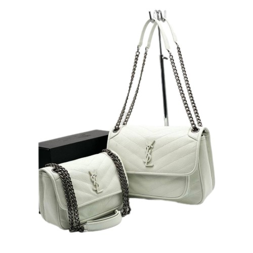 Белая сумка Saint Laurent из натуральной кожи. Элегантная модель станет стильным дополнением вашего образа. Минималистичный дизайн завершает скользящий ремешок-цепочка. В нашем интернет-магазине вы можете купить копии сумок с доставкой по Москве и по всей России.