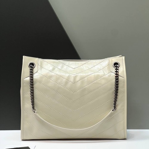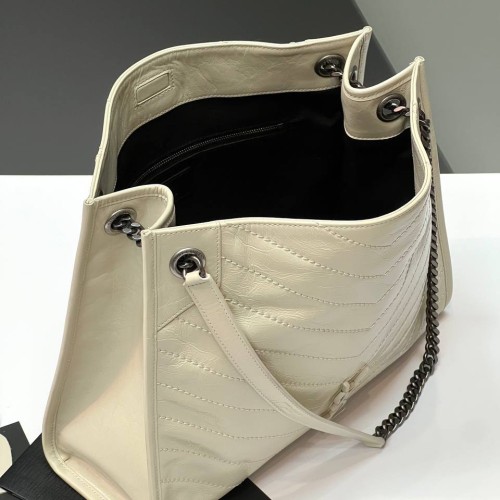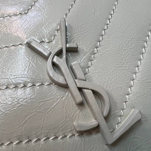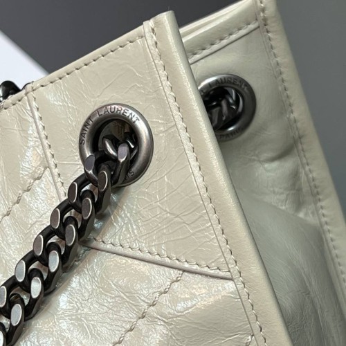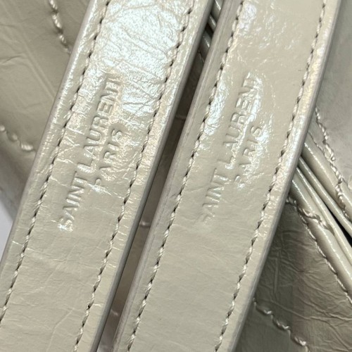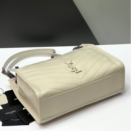 Белая сумка Saint Laurent из натуральной кожи. Стильный аксессуар дополнен ремешком-цепочкой с кожаным наплечником и фурнитурой цвета темного серебра. Идеально завершит любой ваш образ. В нашем интернет-магазине вы можете купить копии сумок с доставкой по Москве и по всей России.