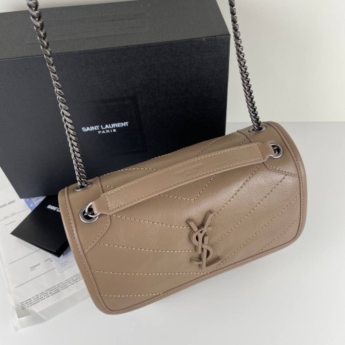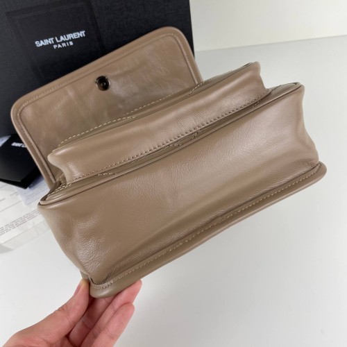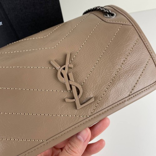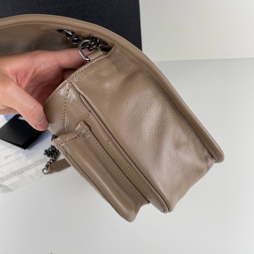 Коричневая сумка Saint Laurent из натуральной кожи. Эмблема бренда в тон модели украшает лицевую часть сумки. Аксессуар можно носить в руке, на плече или перекинув через плечо. В нашем интернет-магазине вы можете купить копии сумок с доставкой по Москве и по всей России.