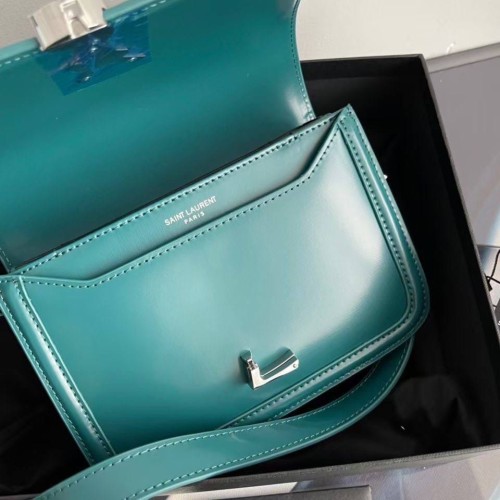 Голубая сумка Saint Laurent Solferino из натуральной кожи. Небольшая, но весьма удобная сумка великолепно украшена прекрасной фурнитурой серебристого цвета. Благодаря удобному и регулируемому по длине плечевому ремню, ее можно носить как на плече так и через плечо. В нашем интернет-магазине вы можете купить копии сумок с доставкой по Москве и по всей России.