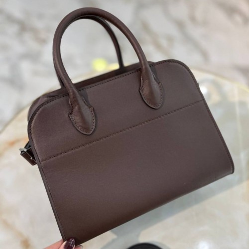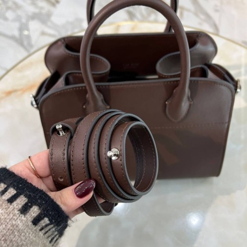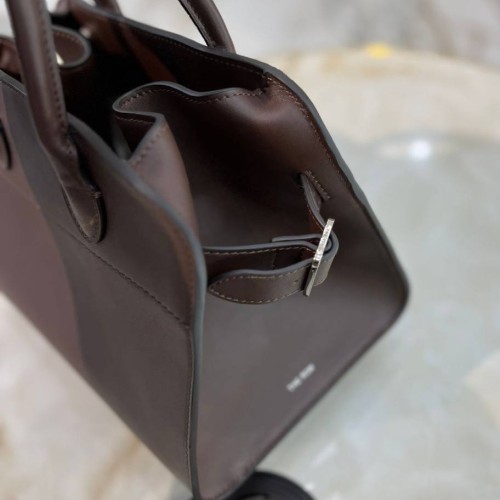 Коричневая сумка The Row из натуральной кожи. Роскошная модель будет идеально смотреться в любом вашем образе. Классические ручки сверху и съемный плечевой ремень позволяют носить аксессуар разными вариациями. В нашем интернет-магазине вы можете купить копии сумок с доставкой по Москве и по всей России.