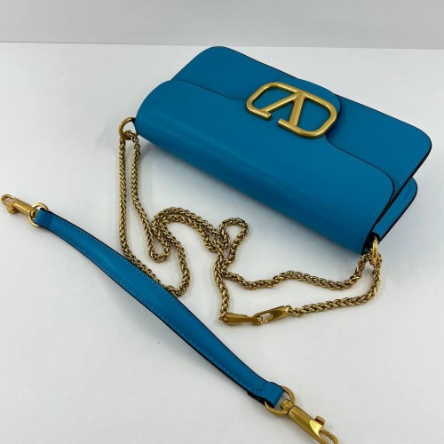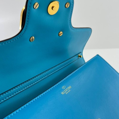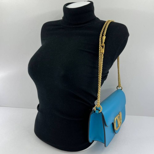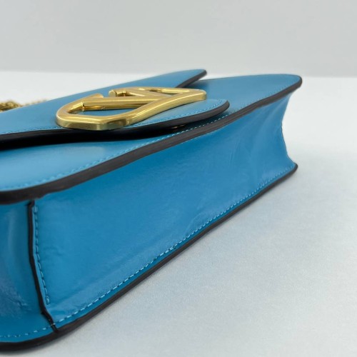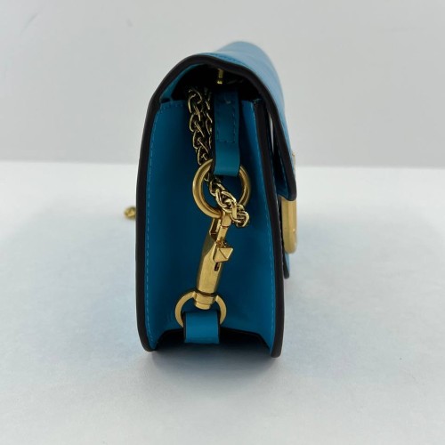 Голубая сумка Valentino из натуральной кожи. Прекрасная модель дополнена съемными ручкой и плечевым ремнем-цепочкой. Стильный аксессуар можно носить различными вариациями - как клатч, за ручку, на плече или перекинув через него. В нашем интернет-магазине вы можете купить копии сумок с доставкой по Москве и по всей России.