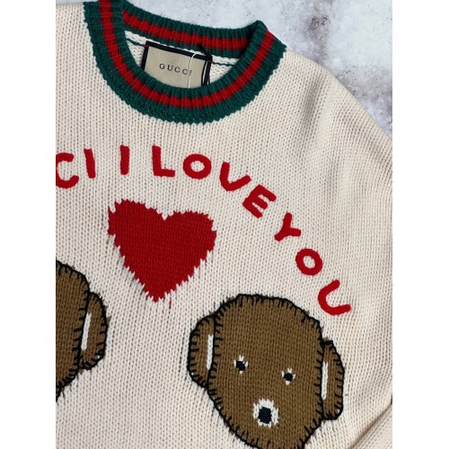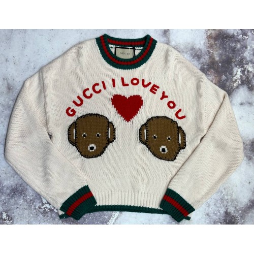 Белый свитер от Gucci изготовлен из натуральной шерсти. Милое изделие с клевым принтом. Идеальный подарок для любимого человека. В нашем интернет-магазине вы можете купить копии свитеров с доставкой по Москве и по всей России.