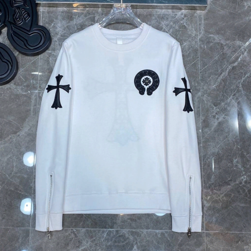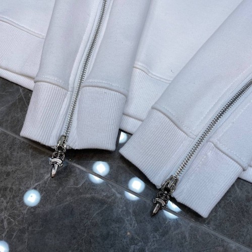 Дизайнерский свитшот от бренда Chrome Hearts белого цвета. Изделие с изображением крестов вдоль рукавов украшено молнией. В нашем интернет-магазине вы можете купить копии свитшотов с доставкой по Москве и по всей России.