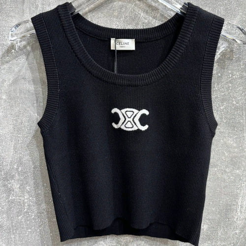 Топ от модного дома Celine черного цвета. Эластичный узор, визуально моделирующий силуэт, гарантирует мягкую посадку точно по фигуре. Материал изделия хорошо пропускает воздух и почти не ощущается на теле. В нашем интернет-магазине вы можете купить копии топов с доставкой по Москве и по всей России.