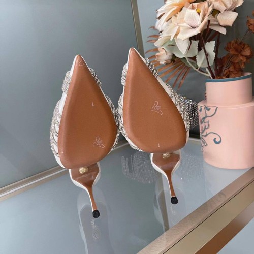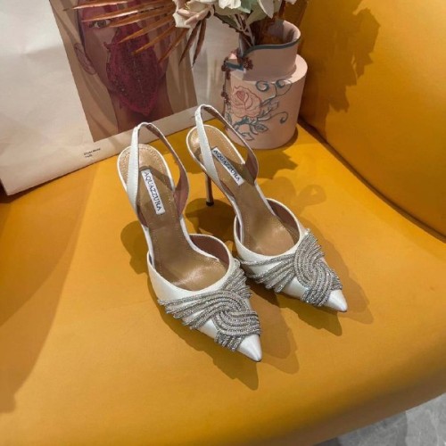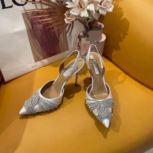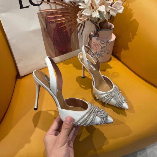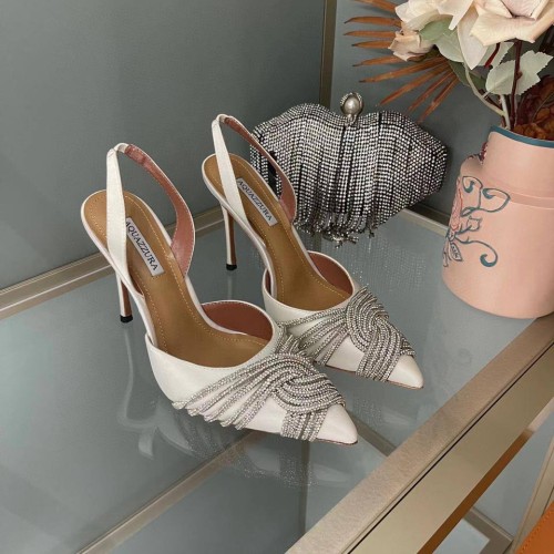 Белые туфли Aquazzura из натуральной кожи и велюра. Острый носок и шпилька 10 см сделает ваш образ женственнее и ярче. Серебряное переплетение кристаллов придает неотразимости и шика. В нашем интернет-магазине вы можете купить копии туфель с доставкой по Москве и по всей России.
