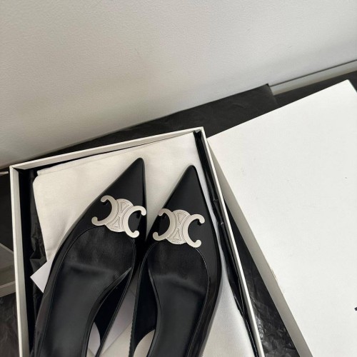 Черные туфли Celine выполнены из натуральной кожи. Туфли на каблуке являются незаменимой частью женского гардероба. Данная модель имеет открытую пятку и стильную серебряную пряжку. Острый носок и каблук 4,5 см идеально подчеркнут вашу женственность. В нашем интернет-магазине вы можете купить копии туфель с доставкой по Москве и по всей России.