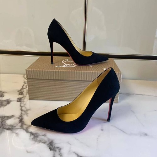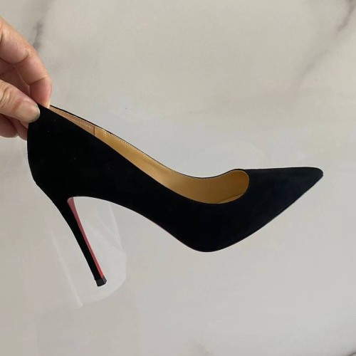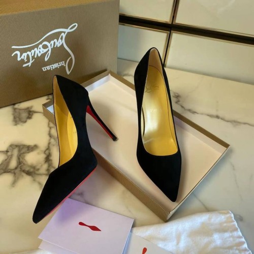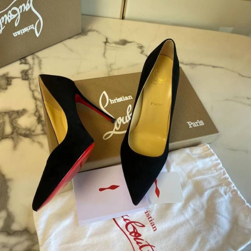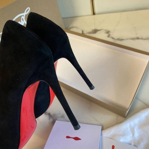 Черные туфли от Christian Louboutin выполнены из натуральной мягкой замши. Яркие шпильки вне времени имеют каблук 10,5 см. Знаменитая красная подошва не оставит вас равнодушной. В нашем интернет-магазине вы можете купить копии туфель с доставкой по Москве и по всей России.