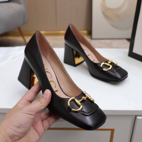 Черные стильные туфли Gucci из натуральной кожи. Модель туфель имеет устойчивый каблук, высотой 7,5 см и квадратный носок. Геометричный вырез подчеркивает подъем, а стильная золотая пряжка завершает лаконичный дизайн обуви. В нашем интернет-магазине вы можете купить копии туфель с доставкой по Москве и по всей России.