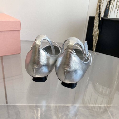 Серебряные туфли Miu Miu из натуральной кожи. Черный носок и каблук 3,5 см. Обувь способна произвести впечатление. Стать акцентом в образе модели помогает мягкая серебристая кожа с металлизированным блеском. Он визуально придает союзке дополнительный объем: так ремешки выглядят эффектнее. В нашем интернет-магазине вы можете купить копии туфель с доставкой по Москве и по всей России.