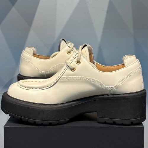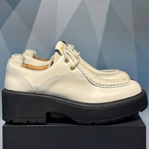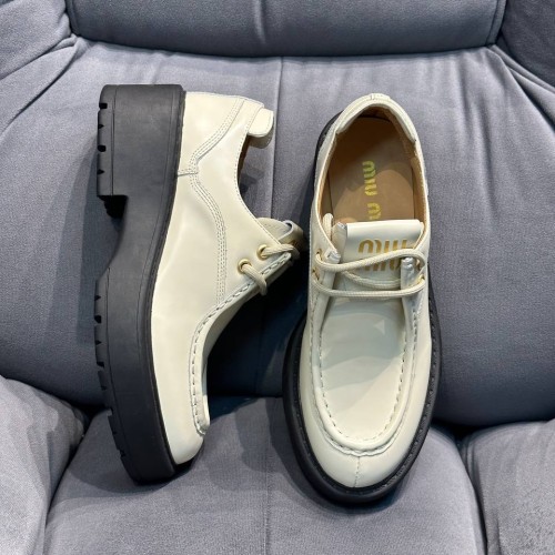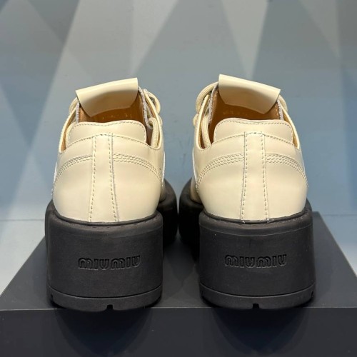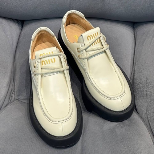 Бежевые туфли Miu Miu из натуральной кожи. Туфли являются прекрасным выбором для любого времени года - от летней жары до холодных зимних дней работы в офисе. Благодаря своей удобной платформе и каблуку, они находятся вне времени. В нашем интернет-магазине вы можете купить копии туфель с доставкой по Москве и по всей России.