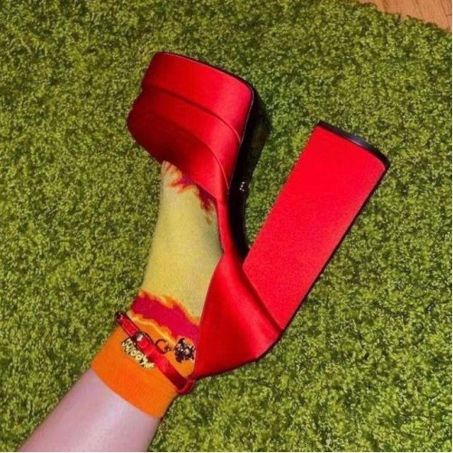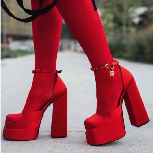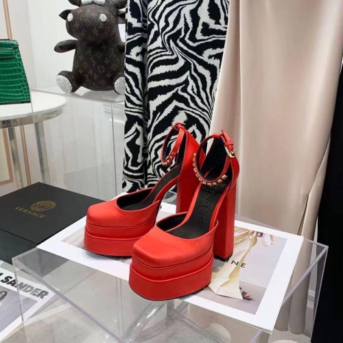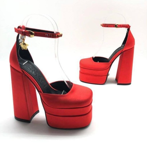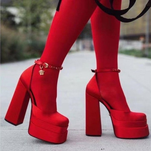 Красные туфли Versace из атласа. Невероятно броская пара обуви выделяется своим дерзким и шикарным дизайном. Образ отлично завершают высокий каблук и устойчивая платформа. В нашем интернет-магазине вы можете купить копии туфель с доставкой по Москве и по всей России.