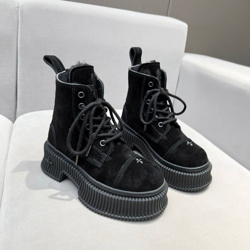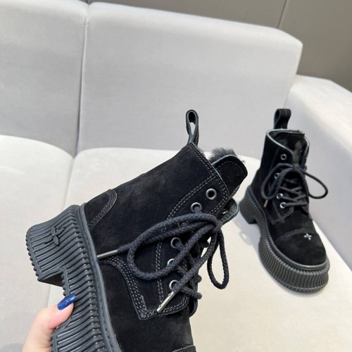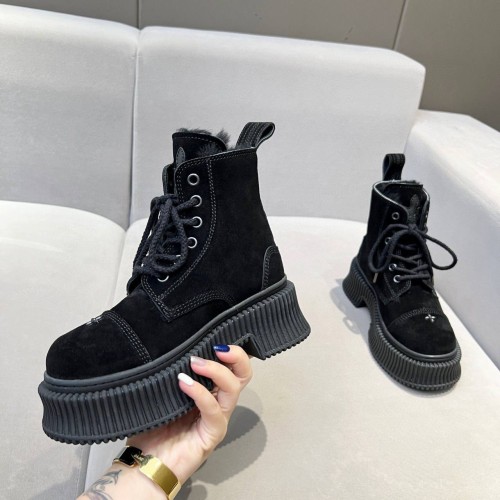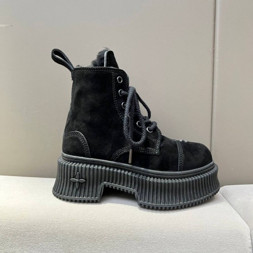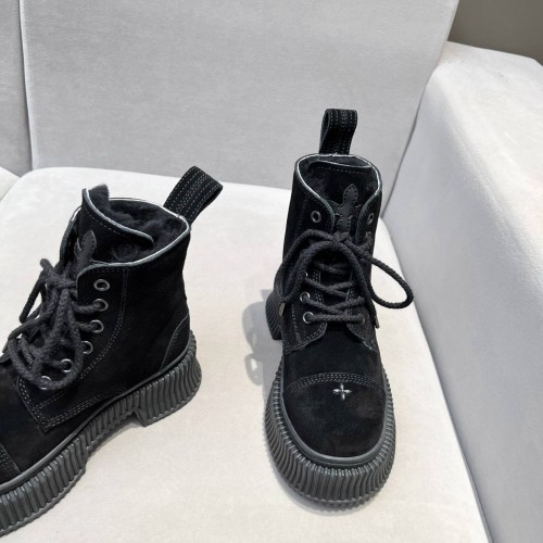 Зимние черные ботинки SMFK из натуральной мягкой замши и меха. Модные ботинки для холодного времени года украшены изображением креста в виде цветка. Модная подошва придает внешнему виду обуви современность и безупречность. Вы будете чувствовать себя комфортно и стильно в любых погодных условиях. В нашем интернет-магазине вы можете купить копии ботинок с доставкой по Москве и по всей России.