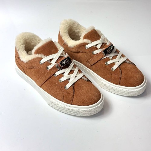Женские коричневые зимние кеды Hermes изготовлены из натуральной замши и меха. Женские кеды на белой подошве выбор тех, кто ценит комфорт и качество. Качественный мех обеспечит сухость и тепло ваших ног в самые сильные морозы на протяжении всего дня. В нашем интернет-магазине вы можете купить копии кед с доставкой по Москве и по всей России.
